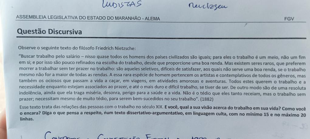 Comentários ao tema de redação da ALEMA: como você encara o trabalho?