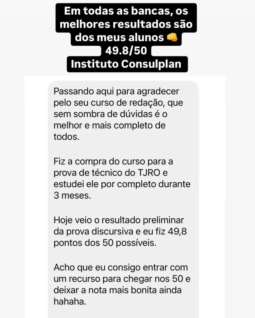 São correções minuciosas e realizadas por 2 professores especialistas por meio de áudios bem detalhados e seguindo as características da banca.